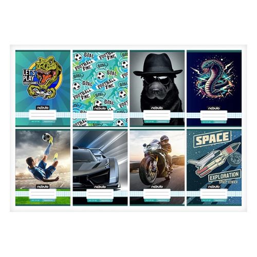Design füzet négyzetrácsos belívekkel. 16 db füzet (8 különböző vagány minta, azaz 2db/minta) van egy csomagban. 70 g-os füzetlapok és 200 g-os műnyomó borító fényes fóliával. A Nebulo design füzet kollekciói 100%-ban Magyar termékek.